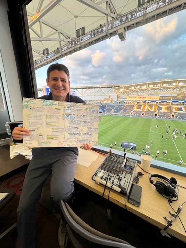 Currently, I’m in my 11th season as a commentator with Major League Soccer’s Philadelphia Union, and my 4th as the club’s radio play by play broadcaster. Around my Union soccer schedule, I appear on ESPN Networks throughout the year announcing various sports on National TV, including college basketball and ACC Track and Field. Each summer, I head to New York and announce at the US OPEN Tennis Championships as a radio and world feed tv commentator. It’s a real treat for me to broadcast at America’s Grandslam as an active tennis player! I also work with clients for voiceover work and speaking engagements.